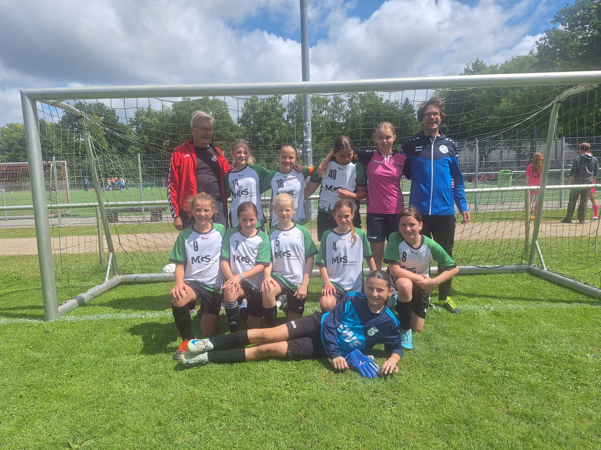 Nach der souverän gewonnenen Bezirksmeisterschaft fuhren wir voller Erwartung zur Landesmeisterschaft nach Neumünster, um uns mit den 3 anderen Bezirkssiegerinnenteams zu messen. Gegen das Emil-von-Behring-Gymnasium aus Großhansdorf starteten wir mit 2 schnellen Toren optimal. Nach der Halbzeit schoss Isabell ihr drittes Tor zum 3:0 Endstand. Anschließend stand das entscheidende Duell gegen die Hermann-Tast-Schule aus Husum an, die ihr erstes Spiel ebenfalls 3:0 gewann. Da Husum mit zwei individuell sehr starken Offensivspielerinnen antrat, war jetzt vor allem unsere Defensive gefragt. Marie, Samantha, Emilia, Nora und Leonie unterstützten sich immer wieder und verteidigten so stark, dass die Husumerinnen nur zu wenig erfolgversprechenden Torabschlüssen kamen. Wenn der Ball dennoch durchkam, machte Torhüterin Victoria ihn gewohnt sicher fest. Mit guten Pässen aus der Abwehr wurden wiederholt schnelle Konter eingeleitet, von denen Emma (1) und Isabell (2) drei zum klaren 3:0 Sieg abschlossen. Da wir den direkten Vergleich gegen die vermutlich stärksten Gegnerinnen gewonnen hatten, war die Landesmeisterschaft greifbar. Die Mädels konnten das letzte Spiel kaum abwarten, die Vorfreude war auf den strahlenden Gesichtern ablesbar. Gegen die Gemeinschaftsschule Probstei übernahm Isabell sofort Verantwortung und erzielte die 2:0 Halbzeitführung. Nora setzte dann den Schlusspunkt zum dritten 3:0 Sieg. Wie schon im Bezirksfinale gelang auch hier: Die Null hinten muss stehen! Mit spielerisch überzeugendem Auftreten und guter Teamleistung wurde unsere U13 verdienter Landesmeister. Der Gewinn der Goldmedaille war zugleich die Qualifikation für die deutsche Meisterschaft, die im September in der Sportschule Bad Blankenburg (Thüringen) ausgetragen wird. Mal schauen, was dort im Vergleich mit den 15 anderen Landessiegern möglich ist.